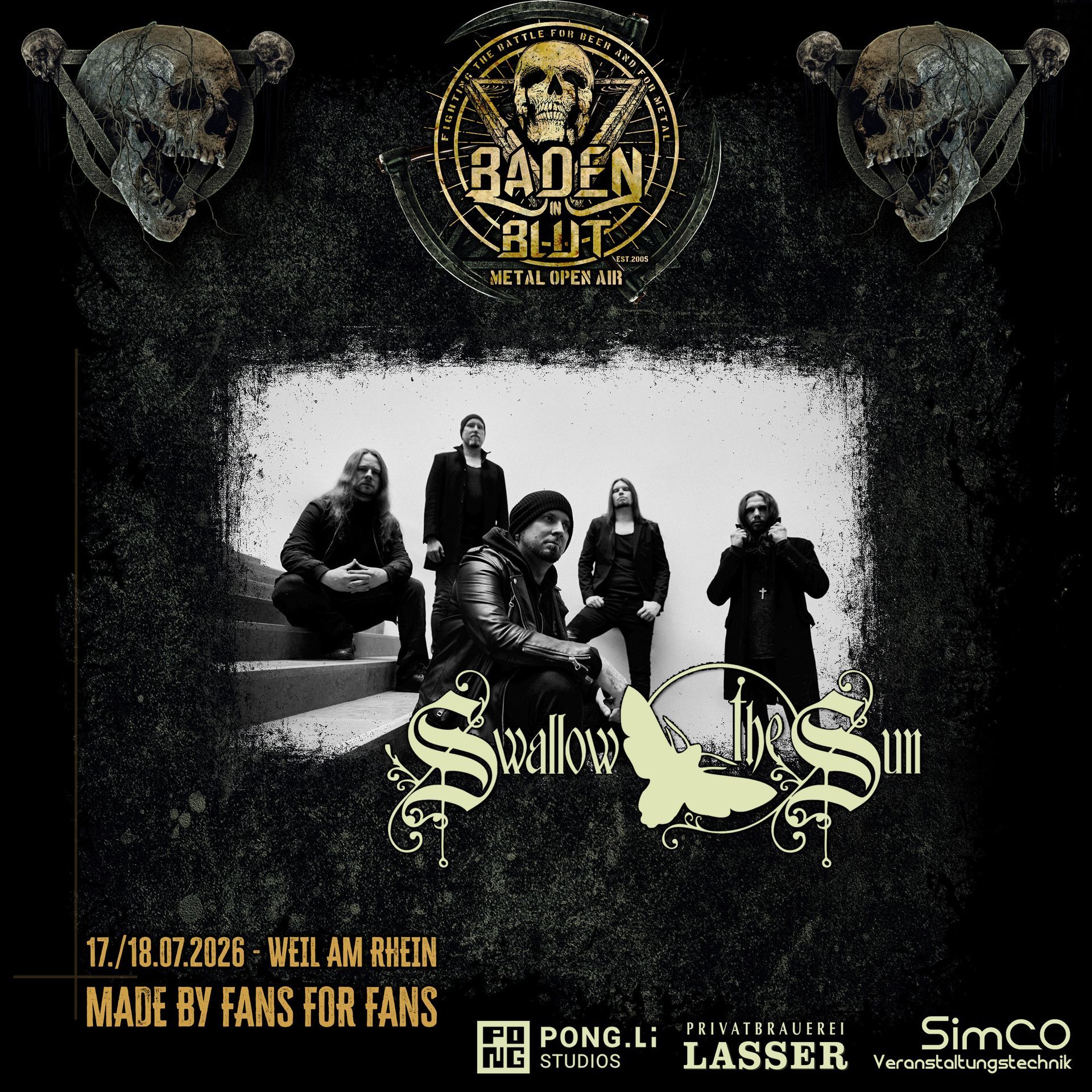 Saturday, July 18th, 2026 When SWALLOW THE SUN take the stage at Baden in Blut Open Air 2026, prepare for a heavy dose of melancholy, atmosphere, and emotional depth. โ๏ธ ๐ค The Soundtrack to Darkness Awaits! ๐