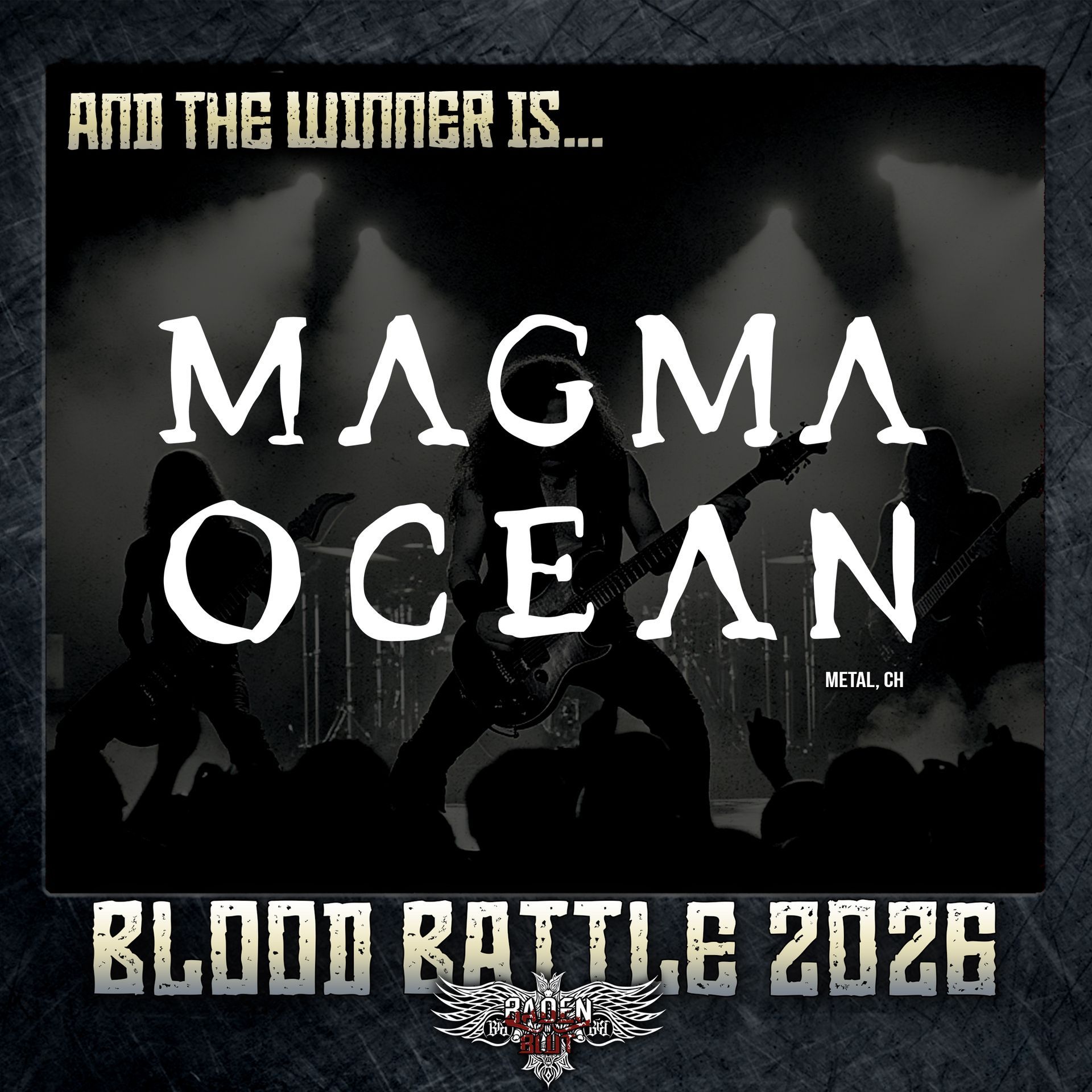 ๐ฅ Blood Battle entschieden – MAGMA OCEAN siegt! ๐ฅ Was für ein Abend! ๐ค๐ฅ Der Blood Battle Bandcontest im ausverkauften alten Wasserwerk in Lörrach hatte wirklich alles: Spannung, Energie und eine Crowd, die jede Note gefeiert hat. In einem packenden Finale setzten sich Magma Ocean mit 736 Stimmen (Publikum & Jury) gegen den zweitplatzierten Act mit 566 Stimmen durch. ๐๐ฅ Der Sieg geht an Magma Ocean! ๐ฅ๐ Magma Ocean bringen frischen Wind in die Schweizer Rocklandschaft. Mit ihrem Mix aus modernem Heavy Rock, groovigen Riffs und atmosphärischen Elementen erschaffen sie einen Sound, der zugleich kraftvoll, tiefgehend und detailverliebt ist. Klassische Rock-Elemente treffen auf zeitgemäße Arrangements und tiefgründige Texte. Die Jungs – bekannt aus Bands wie Shakra, Stallion, Maxxwell oder Battalion – liefern eine leidenschaftliche Live-Performance mit einem wuchtigen Sound, der direkt unter die Haut geht. Magma Ocean sind mehr als nur Rock – sie sind eine sonore Urgewalt, die Genregrenzen bewusst auslotet. ๐ฅ Und das Beste: ๐ Magma Ocean eröffnen das Baden in Blut 2026! ๐