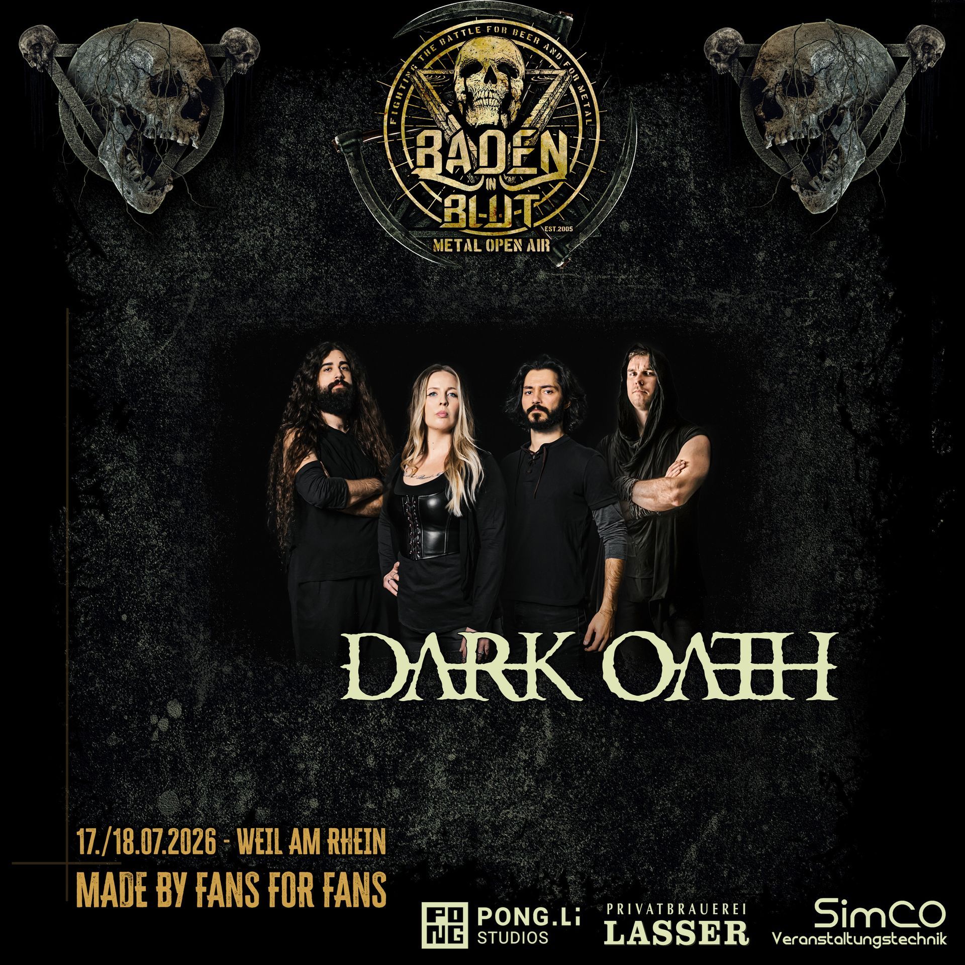 Saturday, July 18th, 2026 DARK OATH will be among the early highlights of Baden in Blut Open Air 2026 – ready to transform the stage into a mythical inferno. ๐ โ๏ธ Time to unleash the “Thousand Beasts”! โก